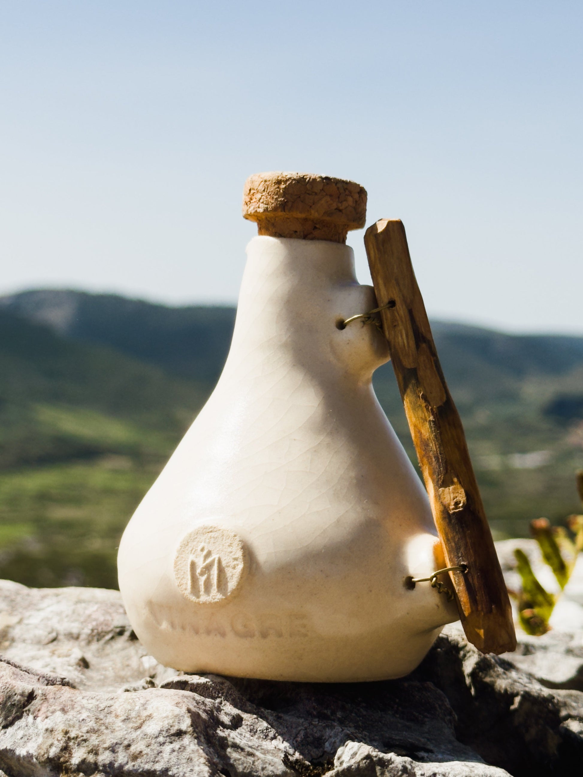 Este galheteiro é composto por duas peças em cerâmica artesanal, feitas à mão por artesões locais. Cada garrafa é única, com detalhes que contam a história de quem a molda.