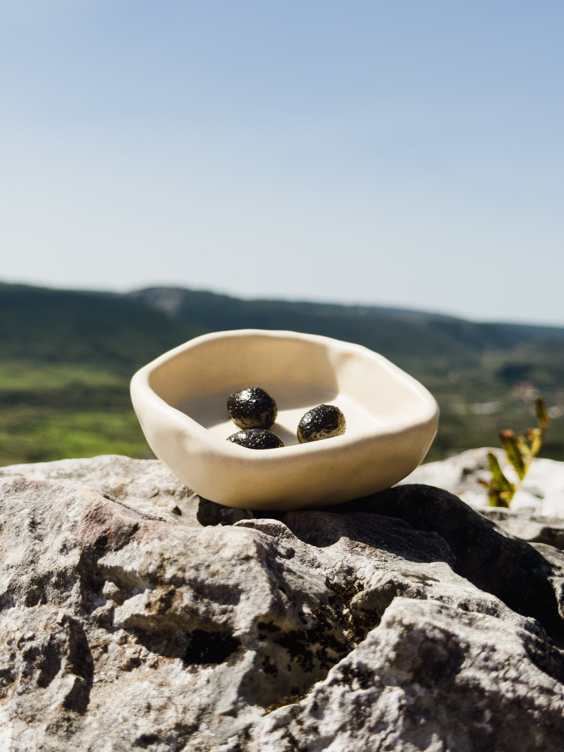 Saboneteira em cerâmica artesanal, feita à mão por um artesão local. Perfeita para colocar o nosso sabonete de Azeite, Limão e a Raspa de Laranja ou simplesmente trazer a beleza rústica do campo para a sua casa. Cada peça é única, com detalhes que contam a história de quem a molda.